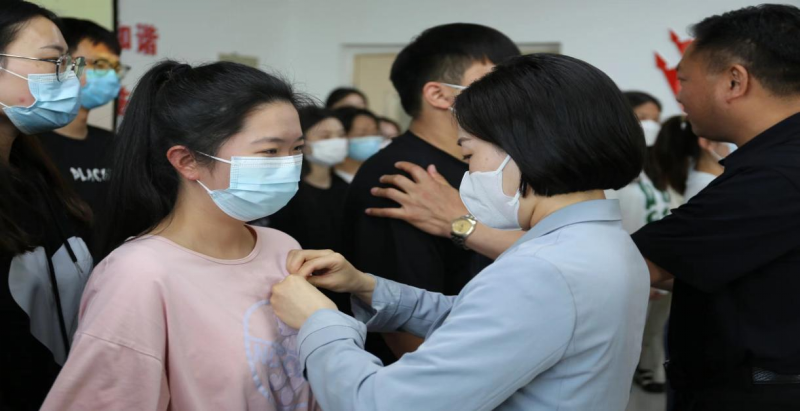 接着各入党培养联系人分别介绍发展对象在校学习、生活和工作的状况。并对该同学是否入党表明意见,会议采取无记名投票方式,对发展对象能否接收为预备党员进行表决,最终全票通过34名发展对象为中共预备党员。雷雨广书记对大会作出总结并宣读决议,许晶晶同志带领预备党员进行入党宣誓,全体党员教师为预备党员佩戴党员徽章,颁发党员证。