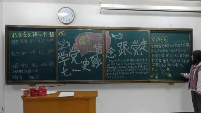 该支部一直将提高成员的思想道德素质、加强政治修养作为班级工作的重点。在建党100周年之际,21级普专护理01团支部开展了系列党史学习教育,引导班级青年学史明理、学史增信、学史崇德、学史力行,厚植爱党爱国爱社会主义的浓厚情怀,努力成为新时代中国特色社会主义事业的建设者和接班人。