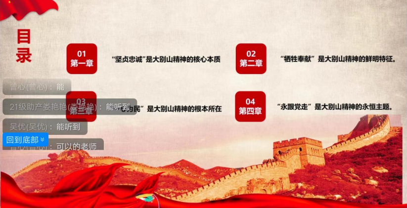 生命不止,奋斗不息。为延续抗战精神,赓续红色血脉,yl88858永利中国于10月29日晚,通过线上钉钉展开了“延续红色血脉,追梦新的征程”为主题的教师党员讲党课活动。本次党课由yl88858永利中国黄莹莹老师主讲,21级积极分子聆听了此次党课。