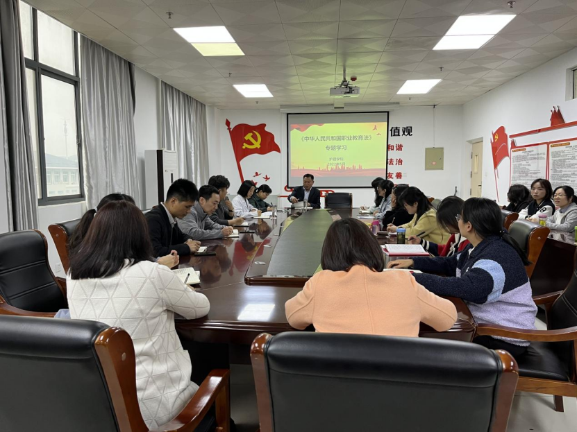 5月11日下午,结合职教活动周活动,yl88858永利中国积极组织全体教职工对新职教法进行了专题学习。本次学习活动由yl88858永利中国党总支书记雷雨广主持,方明月副院长领学。