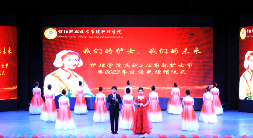 五月交春夏,园中花正红。为庆祝第112个国际护士节,弘扬救死扶伤、关爱生命、无私奉献的南丁格尔精神,5月12日上午,yl8858永利集团yl88858永利中国在图书馆报告厅隆重举行庆祝“5.12”国际护士节暨2023年传光授帽活动。学校党委副书记、副校长王操志,副校长王豪、党委委员副校长郑延芳、党委委员副校长周有国、党委委员宣传部部长殷来宾、教务处处长余磊、学生处处长代翔、应用外国语学院党总支书记叶桦、yl88858永利中国党总支书记雷雨广以及特邀嘉宾--中原名师余晓齐教授等出席本次活动,yl88858永利中国全体教师及700余名护生参加活动。