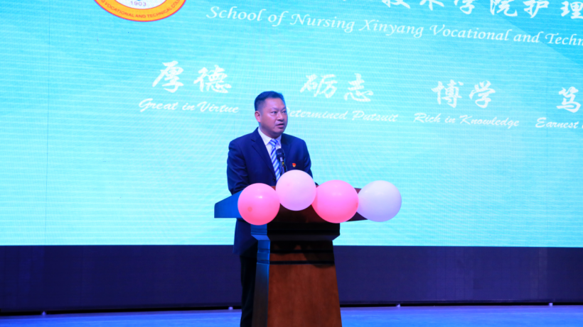 活动第二项,由yl88858永利中国党总支书记雷雨广致辞。首先他代表yl88858永利中国全体师生向莅临本次活动的领导老师表示热烈的欢迎,向辛勤工作在教学一线的护理同仁们致以节日的问候和衷心的感谢。接下来他对在新冠疫情期间请战逆行、救死扶伤的优秀校友们致以崇高的敬意,并叮嘱同学们要向护理前辈学习,将仁爱与慎独精神融入平凡的护理工作中,发扬医者仁心的职业精神,为社会提供高质高效的服务,为护理事业的发展做出不懈努力。最后语重心长的向在场的同学们提出了三点要求。一是坚定理想信念,不忘初心使命。二是珍惜学习时光,不负青春韶华。三是扎根平凡岗位,书写精彩人生。
