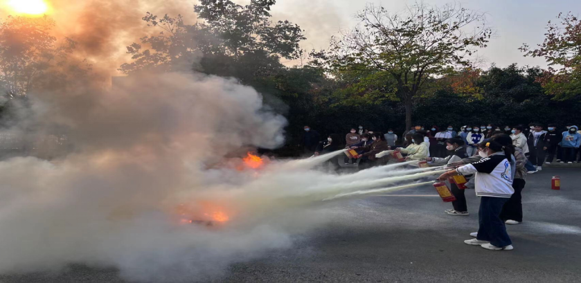消防科人员向大家演示灭火器的正确使用方法,使同学们掌握了灭火技能。