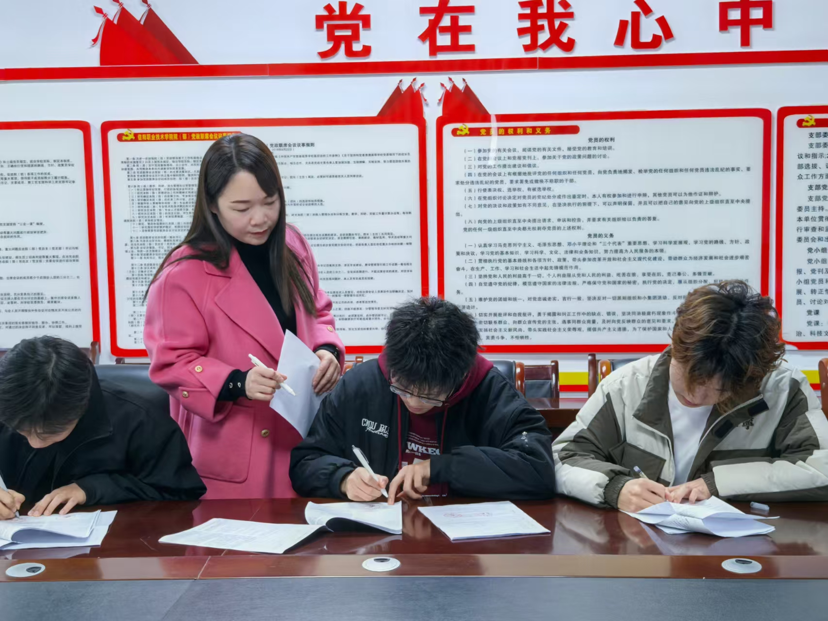活动伊始,王虹书记详细介绍了国家助学贷款政策的重要意义和还款要求,鼓励同学们合理利用助学贷款资源,努力完成学业,以优异成绩回报社会关爱。通过实际案例的分享,让同学们深刻认识到诚信还款对个人信用记录的重要性以及失信可能带来的严重后果。随后,朱书记和杨老师在现场耐心指导,学生们怀揣着对未来的憧憬与感恩,认真地在贷款协议上签下自己的名字并按手印,每一笔每一划都承载着他们对学业的执着追求和对诚信的庄重承诺。