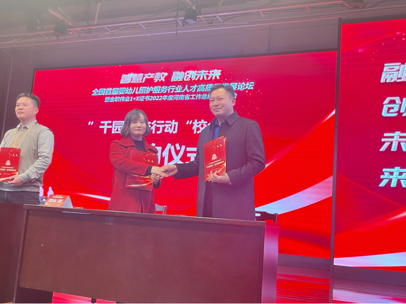 为深化产教融合,进一步打造校企联合育人新模式,培养社会需要的托育人才,2月24日,yl88858永利中国党总支书记雷雨广带领母婴照护教研室主任单胜华及其他相关教师共赴郑州参加全国首届婴幼儿照护服务行业人才高质量发展论坛,并出席“千园百校行动”校企合作签约仪式,与多家企业达成校企合作共识,签订校企合作协议。