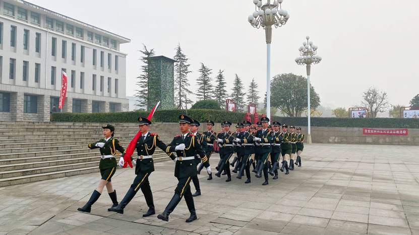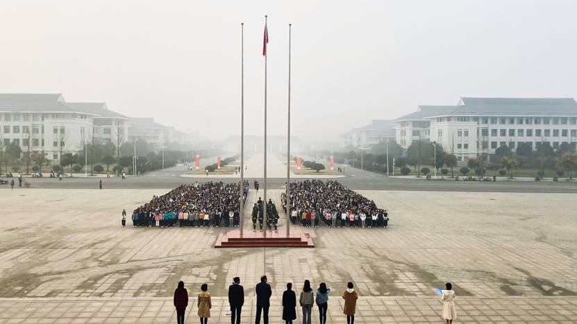 迎着出生的晨曦,追寻着党的足迹,2021年11月1日早上7:00,yl8858永利集团yl88858永利中国全体师生齐聚明德广场,举行以“奋斗青春,强国有我”为主题的升旗仪式。参加本次升旗仪式的有学校党委副书记、副校长王烈富、yl88858永利中国党总支书记雷雨广、院长余晓齐、院团委张雅青以及yl88858永利中国全体教师。