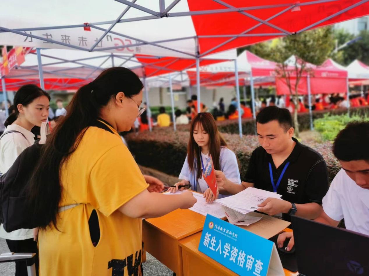 在新生接待点,负责迎新的辅导员和学工领导对照录取信息,认真查看并核对新生的身份证、准考证、录取通知书、收缴新生档案和入学照片,并做好新生信息登记工作,对初审合格的新生,同步登录学校迎新系统,及时更新新生报到情况。